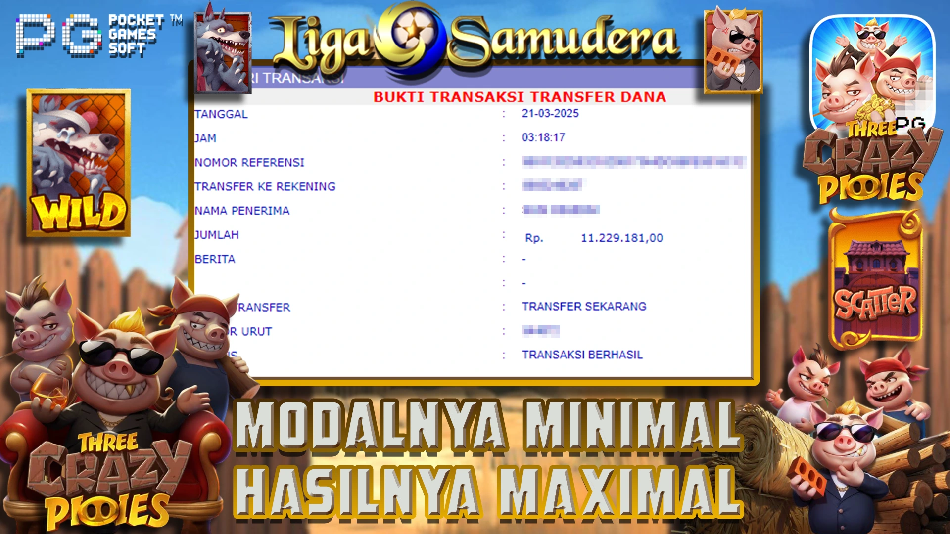 BUKTI KEMENANGAN BERMAIN THREE CRAAZY PIGGIES