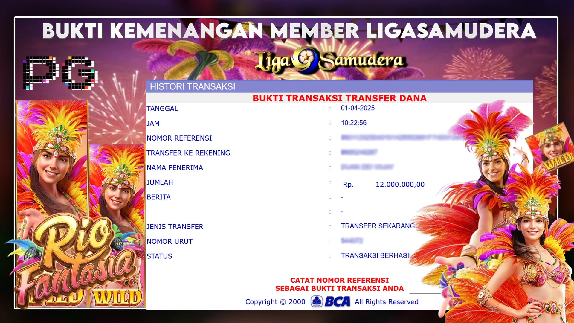 BUKTI KEMENANGAN MEMBER DI PERMAINAN SLOT PG SOFT ”rio fantasia”