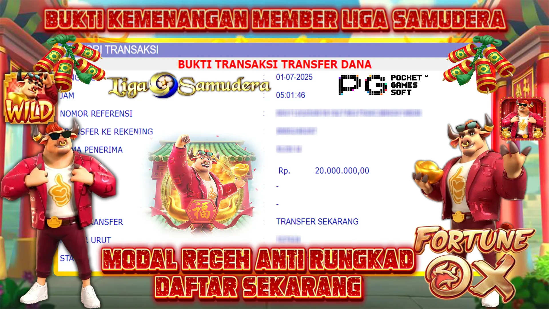 BUKTI KEMENANGAN MEMBER LIGA SAMUDERA BERMAIN GAME SLOT PG SOFT “FORTUNE OX”