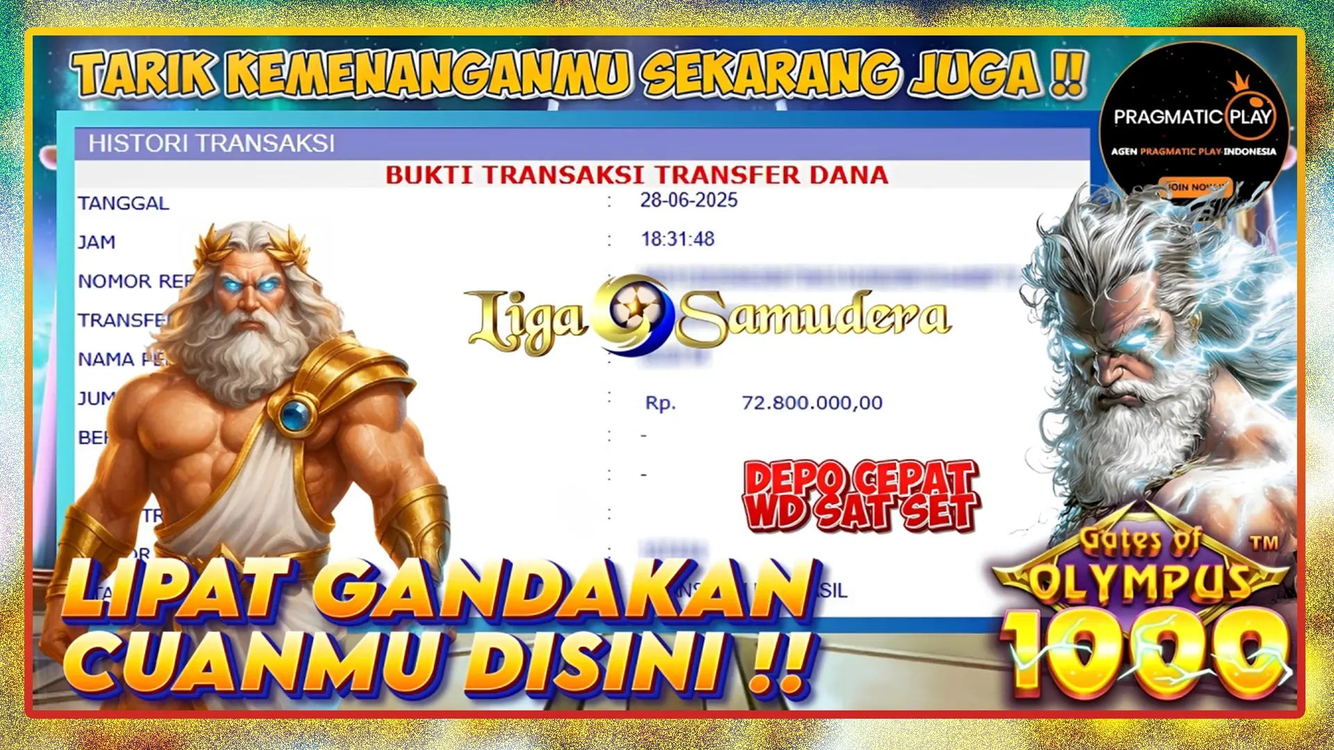BUKTI KEMENANGAN MEMBER LIGA SAMUDERA BERMAIN GAME SLOT PRAGMATIC “GATES OF OLYMPUS 1000™”