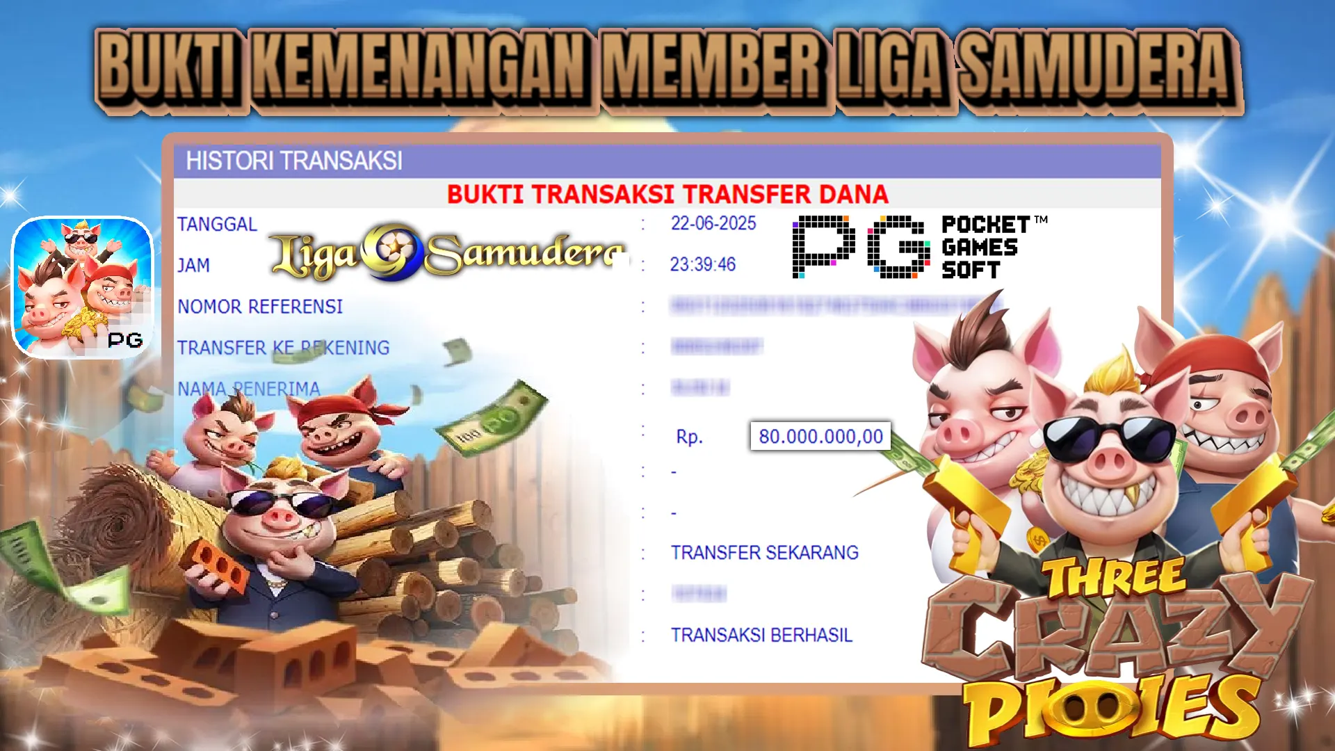 BUKTI KEMENANGAN MEMBER BERMAIN PERMAINAN SLOT PG SOFT ” THREE CRAZY PIGGIES “