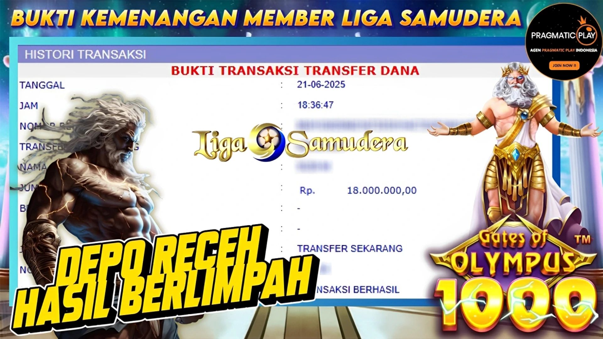 BUKTI KEMENANGAN MEMBER LIGA SAMUDERA BERMAIN GAME SLOT PRAGMATIC “GATES OF OLYMPUS 1000™”
