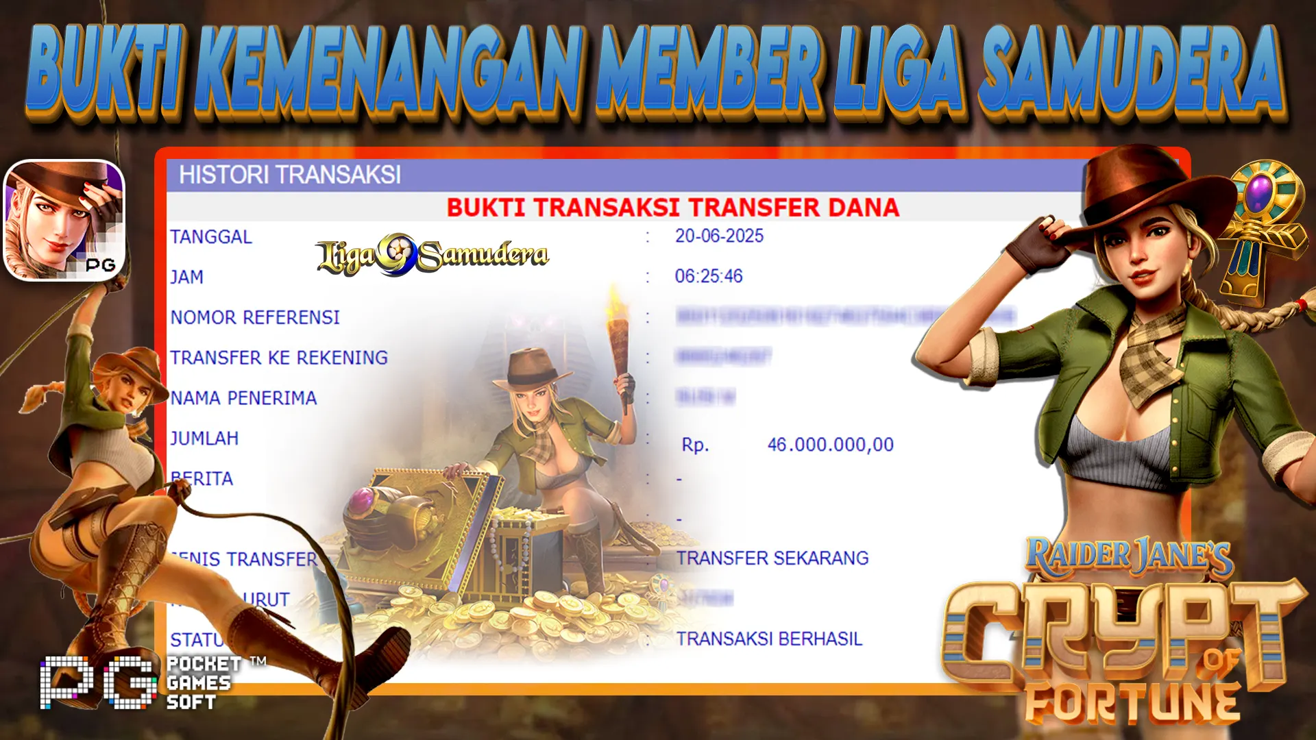 BUKTI KEMENANGAN MEMBER LIGA SAMUDERA BERMAIN SLOT PG SOFT “RAIDER JANE’S CRYPT OF FORTUNE”