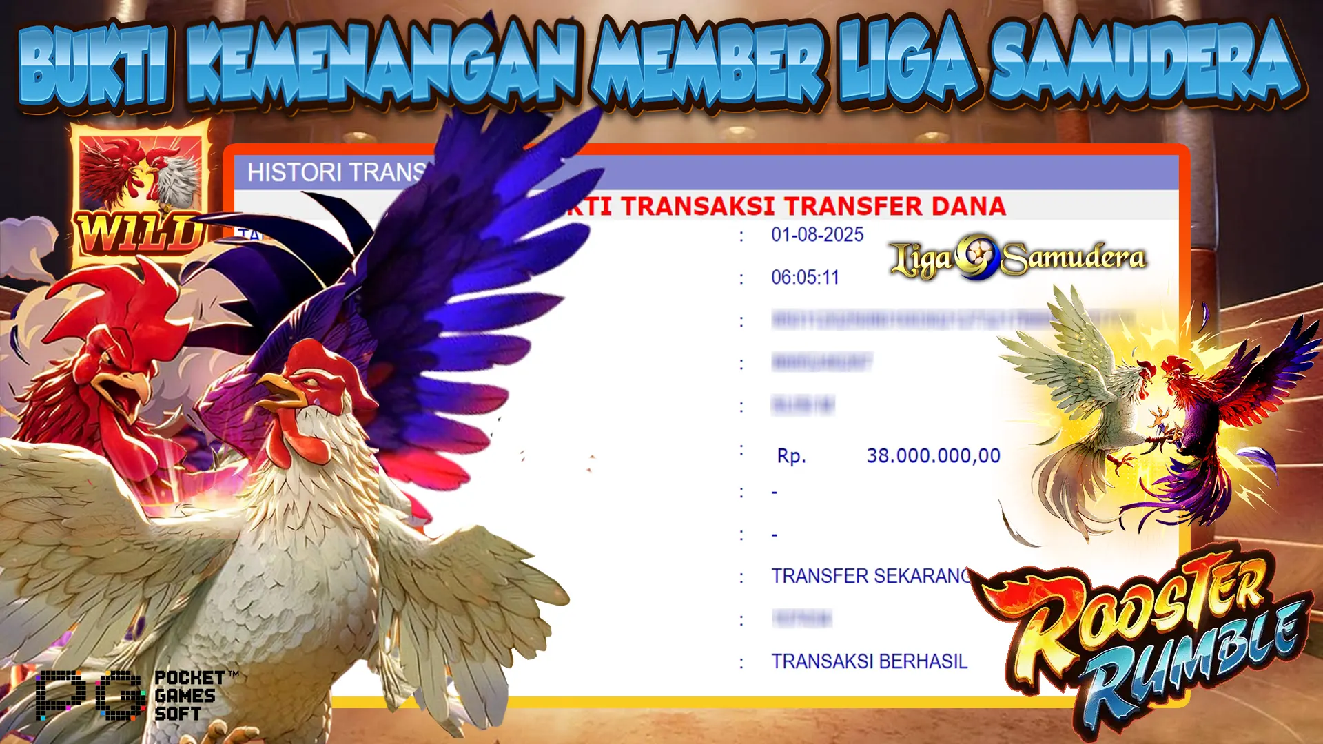 BUKTI KEMENANGAN MEMBER LIGA SAMUDERA BERMAIN GAME SLOT PG SOFT “ROOSTER RUMBLE”