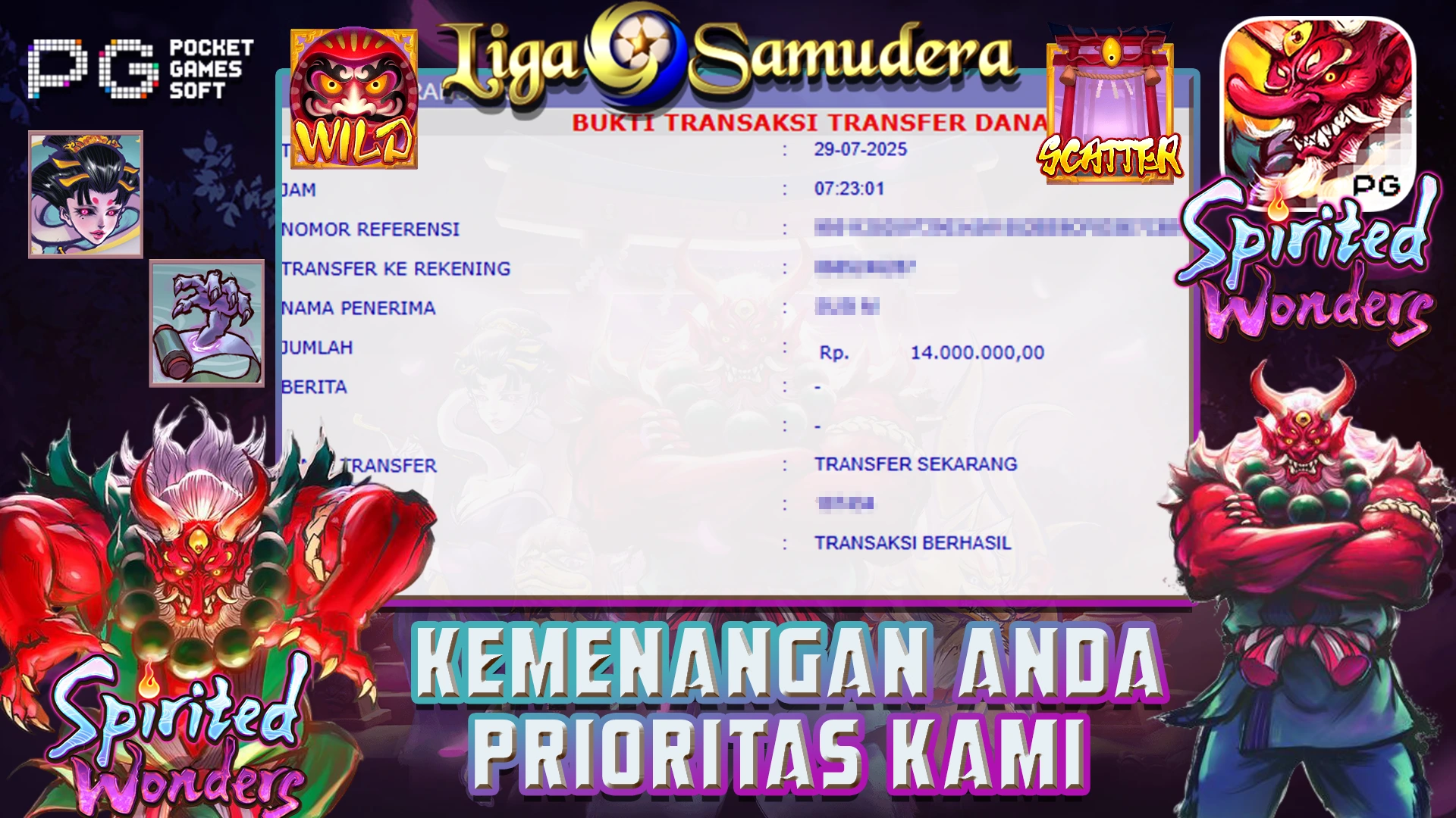 BUKTI KEMENANGAN BERMAIN PERMAINAN SLOT PG SOFT ” SPIRITED WONDERS “