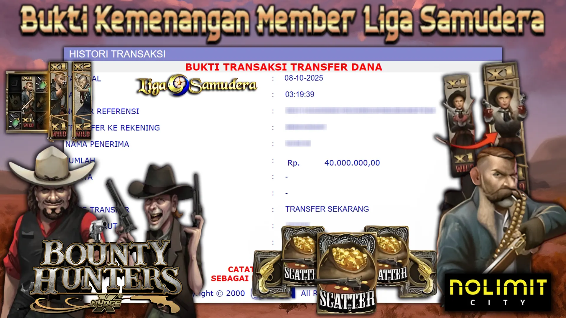 BUKTI KEMENANGAN BERMAIN PERMAINAN SLOT NOLIMIT CITY ” BOUNTY HUNTERS “