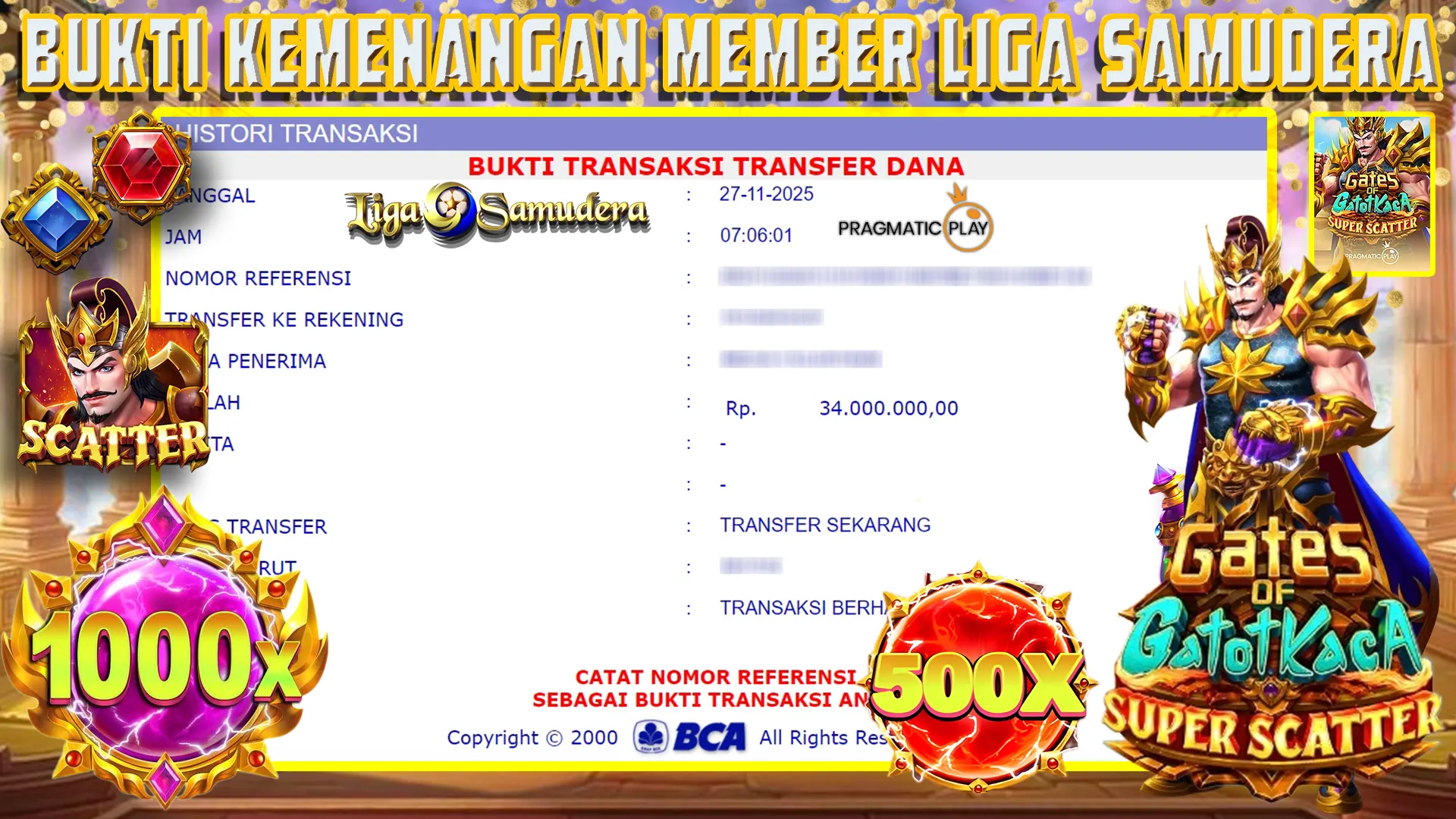 BUKTI KEMENANGAN BERMAIN PERMAINAN SLOT PRAGMATIC ” GATES OF GATOT KACA SUPER SCATTER “