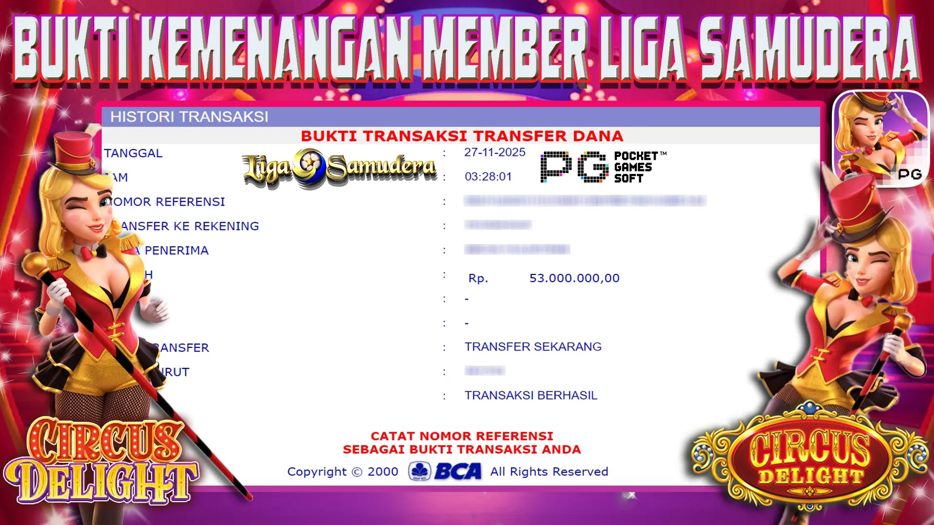BUKTI KEMENANGAN BERMAIN PERMAINAN SLOT PG SOFT ” CIRCUS DELIGHT “