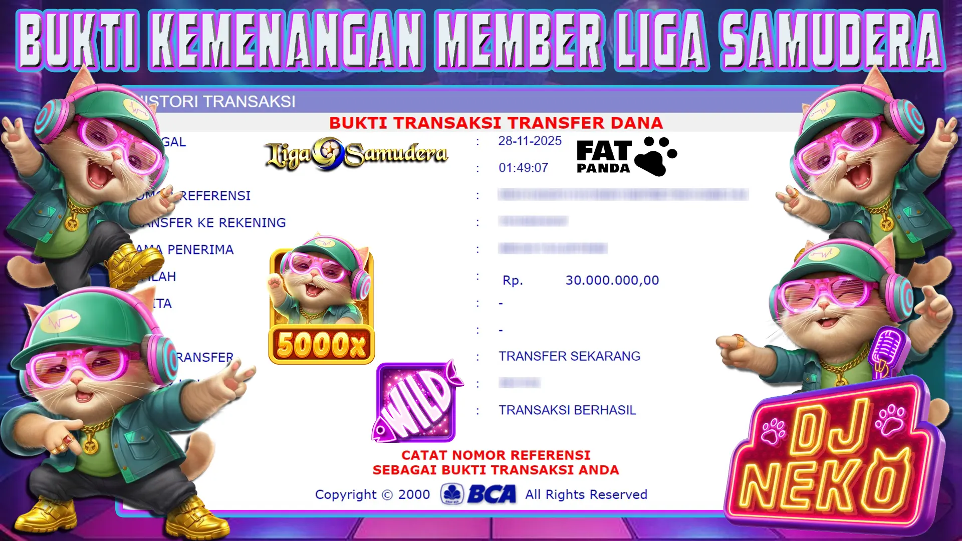 BUKTI KEMENANGAN BERMAIN PERMAINAN SLOT FAT PANDA ” DJ NEKO “