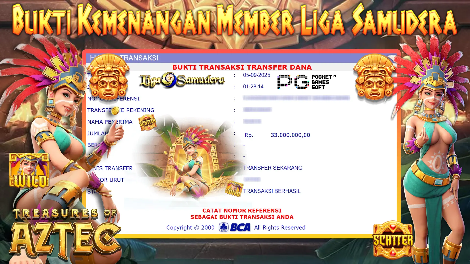BUKTI KEMENAN MEMBER BERMAIN PERMAINAN SLOT PG SOFT ” TREASURES OF AZTEC “
