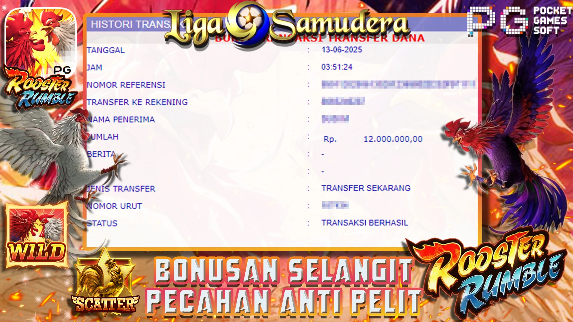 BUKTI KEMENANGAN BERMAIN PERMAINAN SLOT PG SOFT ” ROOSTER RUMBLE “