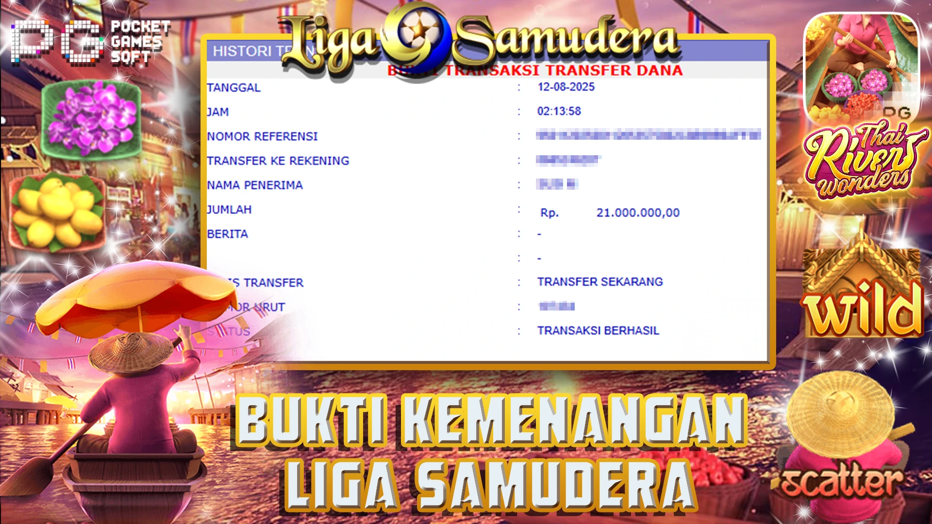 BUKTI KEMENANGAN BERMAIN PERMAINAN SLOT PG SOFT ” THAI RIVER WONDERS “