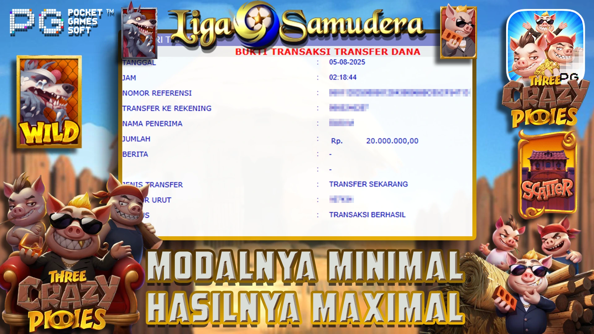 BUKTI KEMENANGAN BERMAIN PERMAINAN SLOT PG SOFT ” THREE CAZY PIGGIES “
