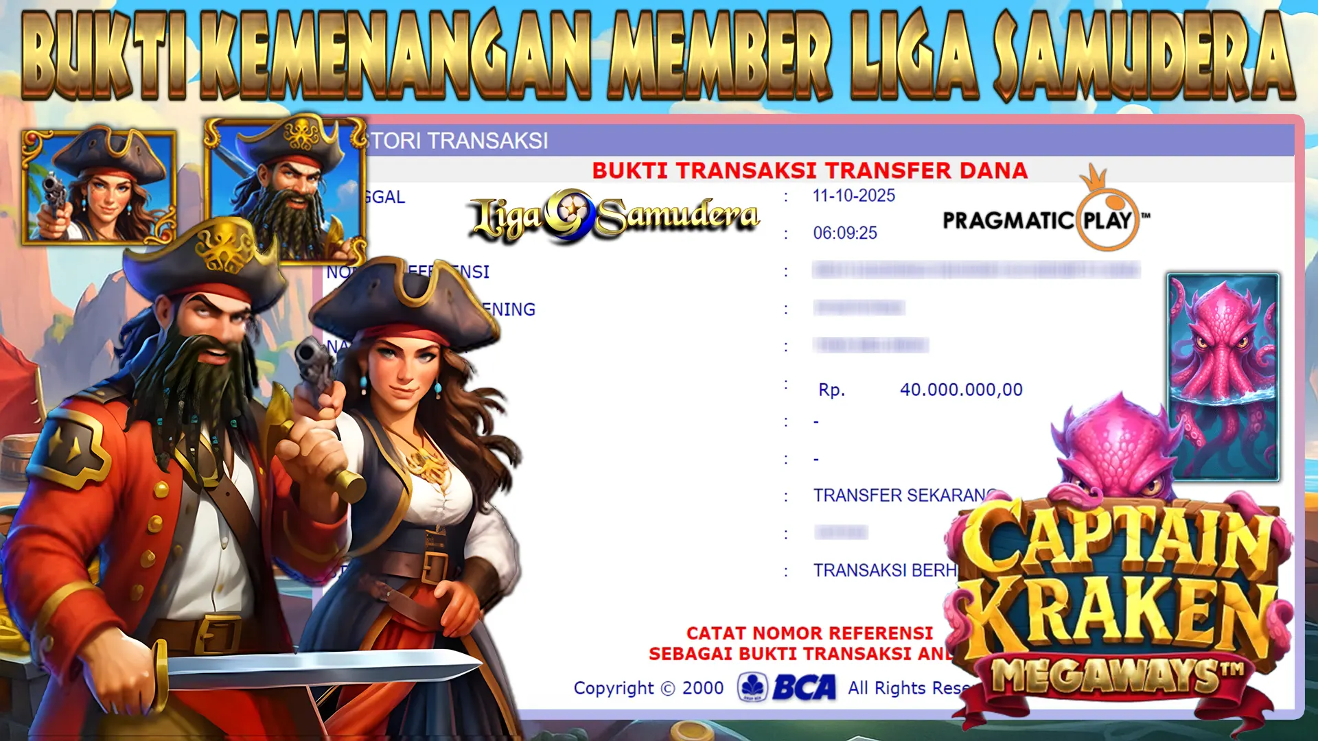 BUKTI KEMENANGAN BERMAIN PERMAINAN SLOT PRAGMATIC ” CAPTAIN KRAKEN MEGAWAYS “