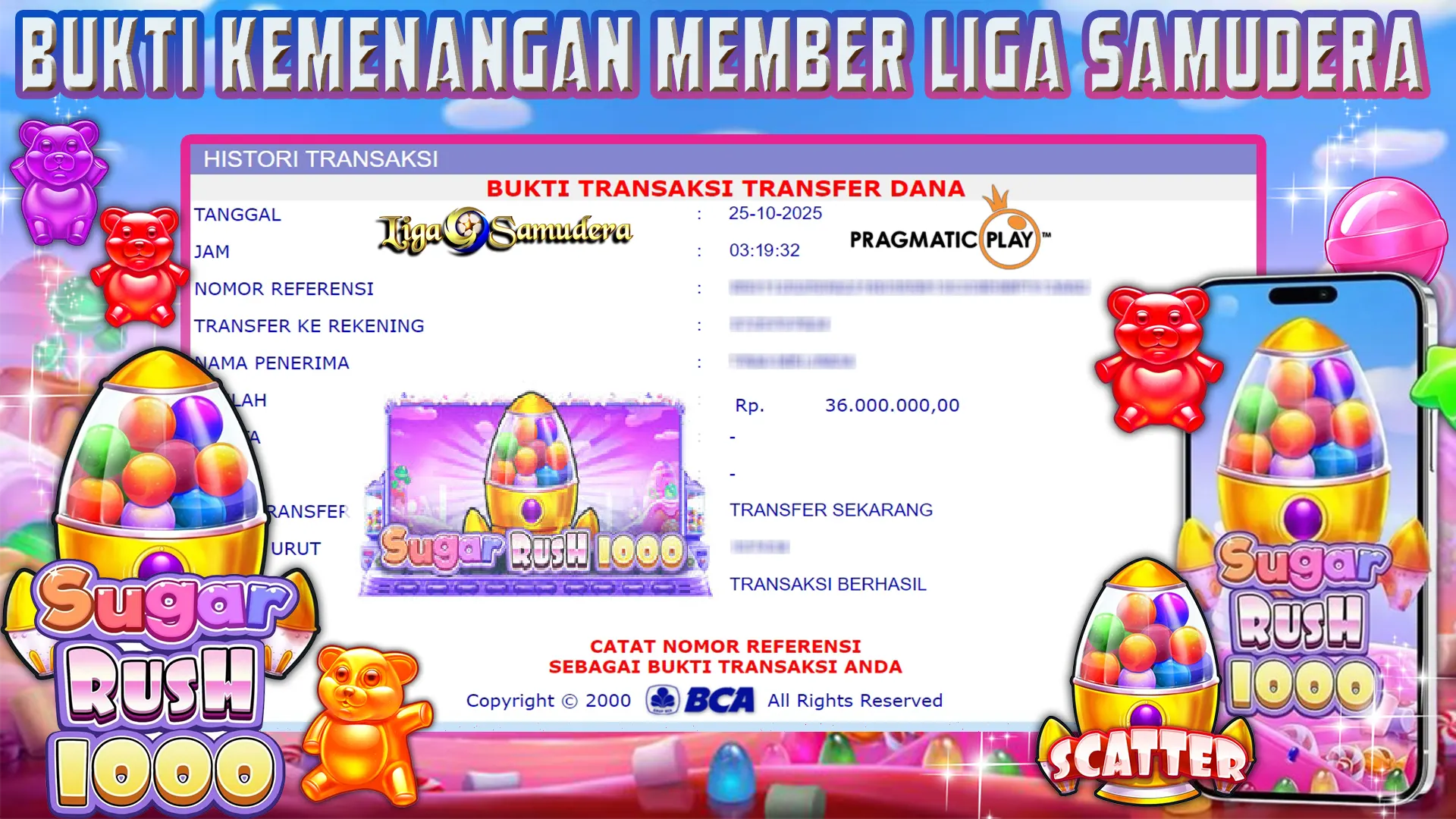 BUKTI KEMENANGAN BERMAIN PERMAINAN SLOT PRAGMATIC ” SUGAR RUSH 1000 “