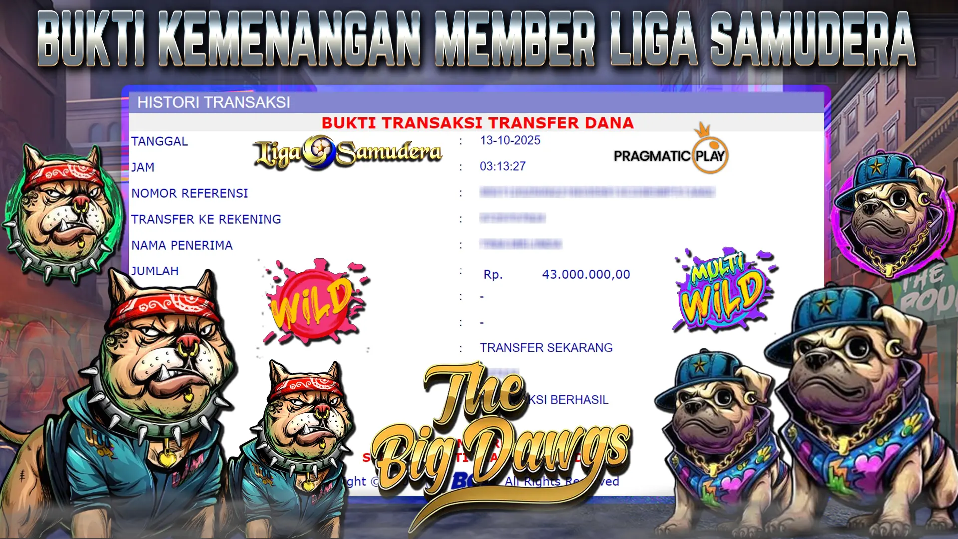 BUKTI KEMENANGAN BERMAIN PERMAINAN SLOT PRAGMATIC ” THE BIG DAWGS “