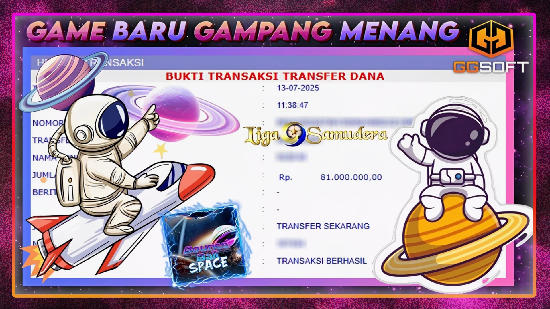 BUKTI KEMENANGAN MEMBER LIGA SAMUDERA BERMAIN E-GAMES GGSOFT “BOUNCE BALL SPACE