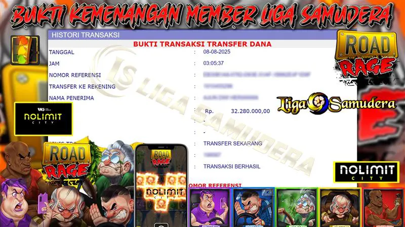 BUKTI KEMENANGAN MEMBER LIGA SAMUDERA BERMAIN GAME SLOT NO LIMIT CITY “ROAD RAGE”