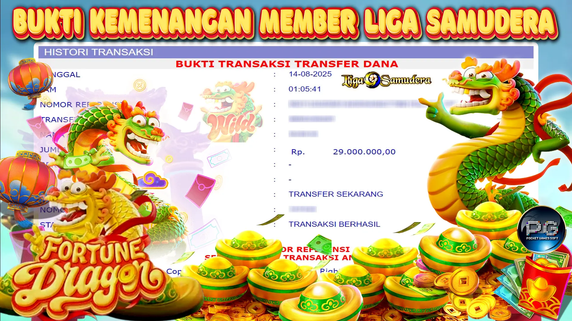 BUKTI KEMENANGAN MEMBER LIGA SAMUDERA BERMAIN GAME SLOT PG SOFT “FORTUNE DRAGON”