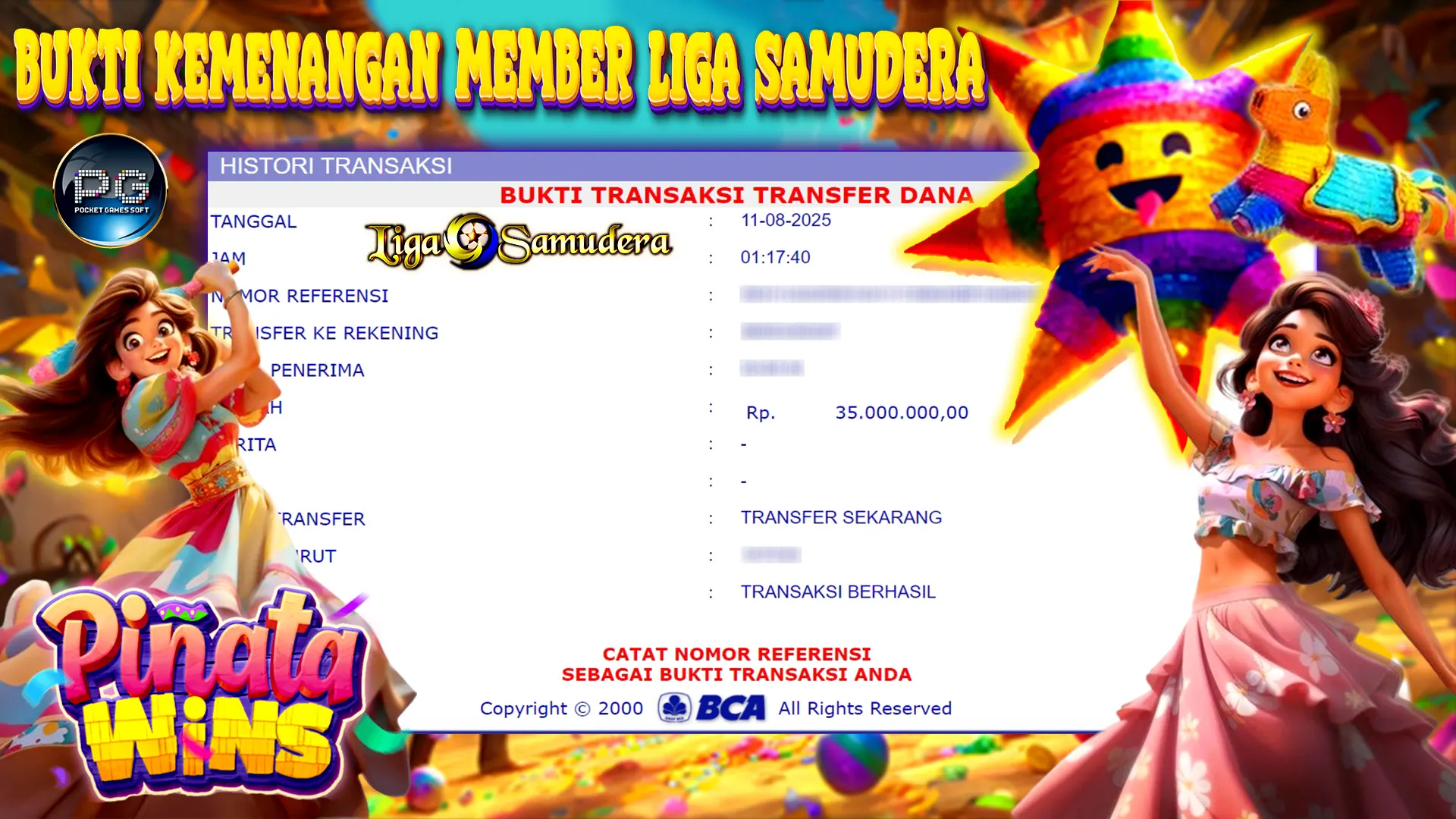 BUKTI KEMENANGAN MEMBER LIGA SAMUDERA BERMAIN GAME SLOT PG SOFT “PINATA WINS”