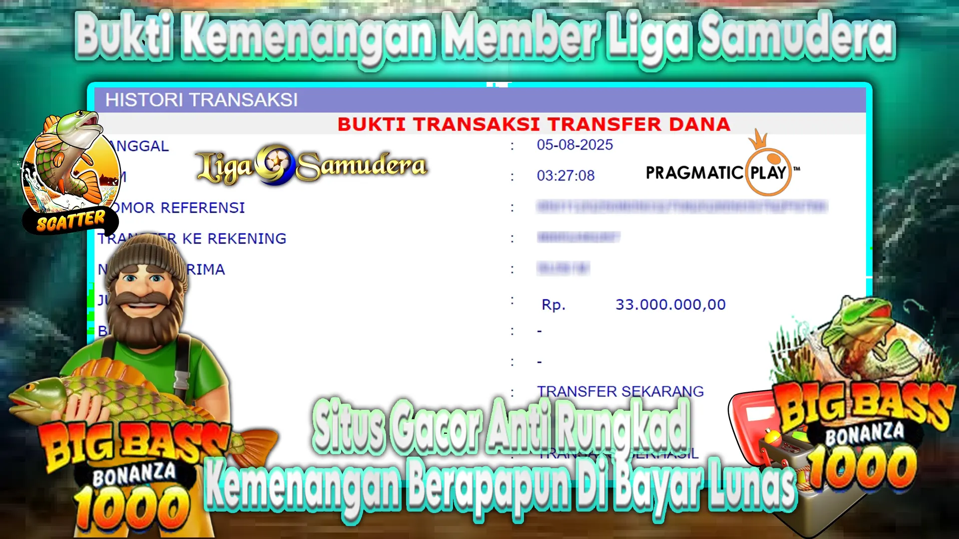 BUKTI KEMENANGAN MEMBER LIGA SAMUDERA BERMAIN GAME SLOT PRAGMATIC “BIG BASS BONANZA 1000”
