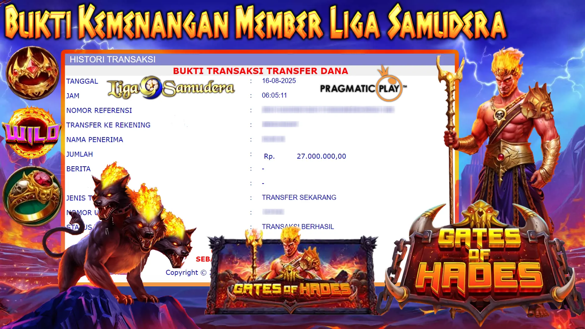 BUKTI KEMENANGAN MEMBER LIGA SAMUDERA BERMAIN GAME SLOT PRAGMATIC “GATES OF HADES”