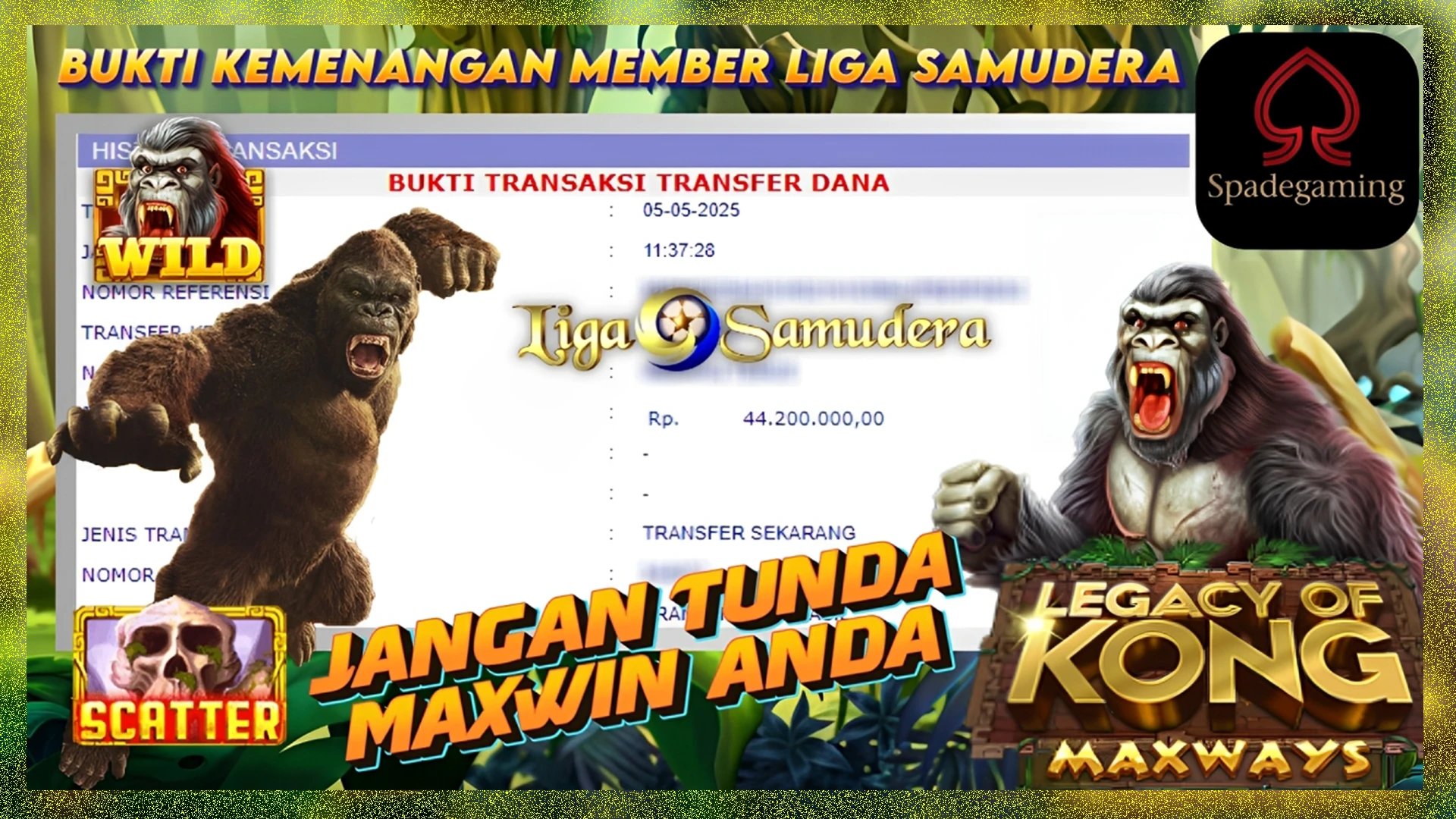 BUKTI KEMENANGAN MEMBER LIGA SAMUDERA BERMAIN GAME SLOT SPADE GAMING “LEGACY OF KONG MAXWAYS”