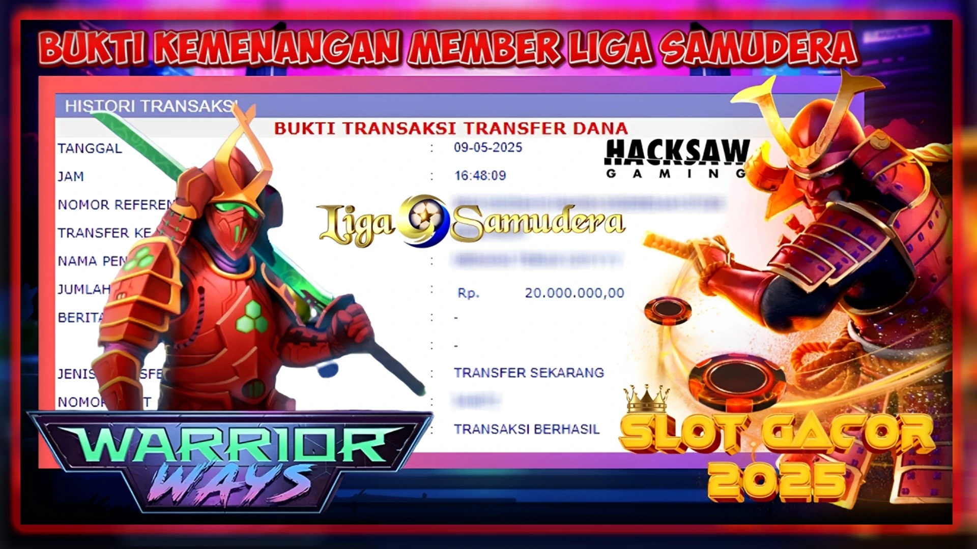 BUKTI KEMENANGAN MEMBER LIGA SAMUDERA BERMAIN SLOT HACKSAW GAMING “WARRIOR WAYS”