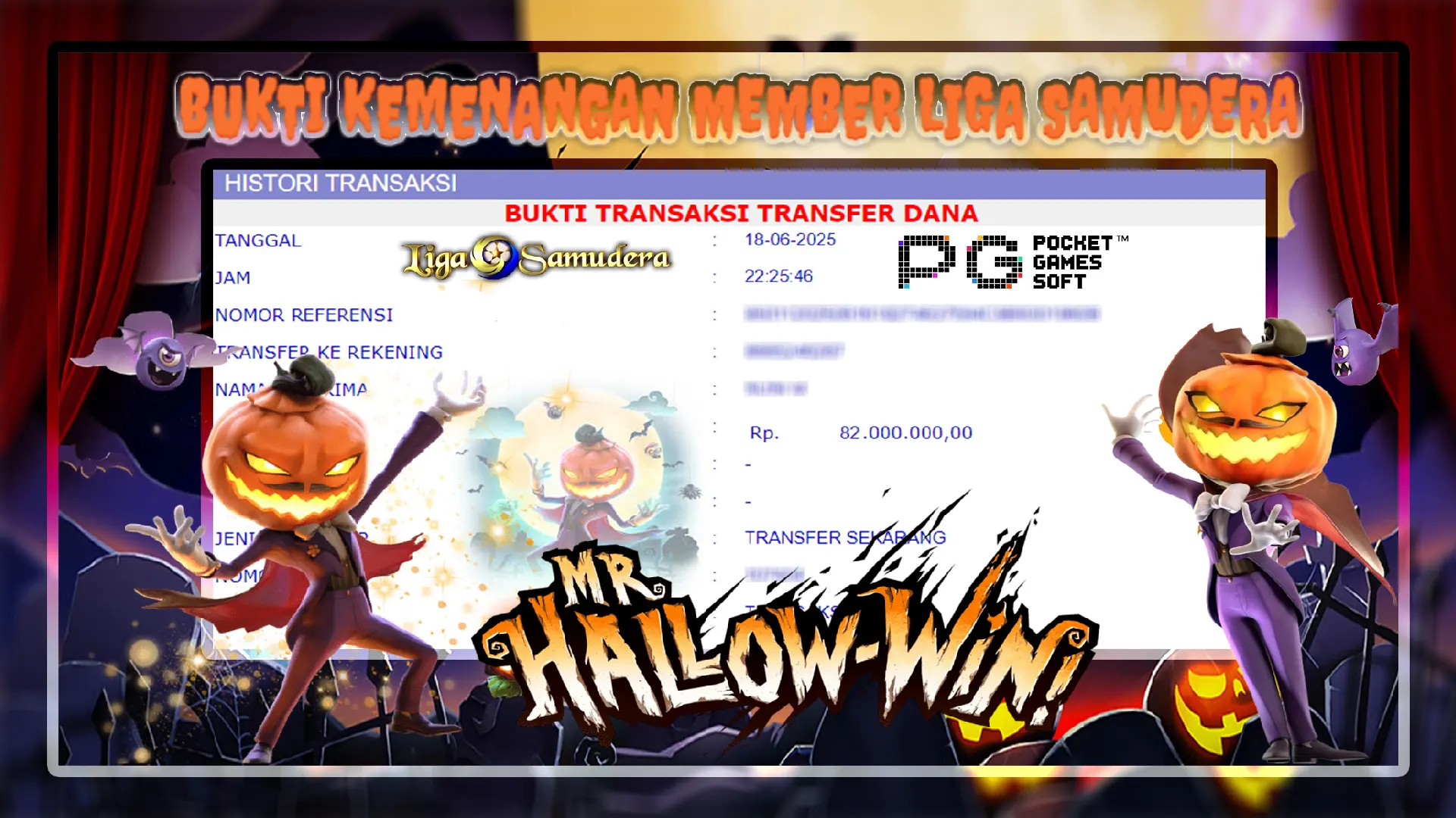 BUKTI KEMENANGAN MEMBER LIGA SAMUDERA BERMAIN SLOT PG SOFT “MR. HALLOW WIN”