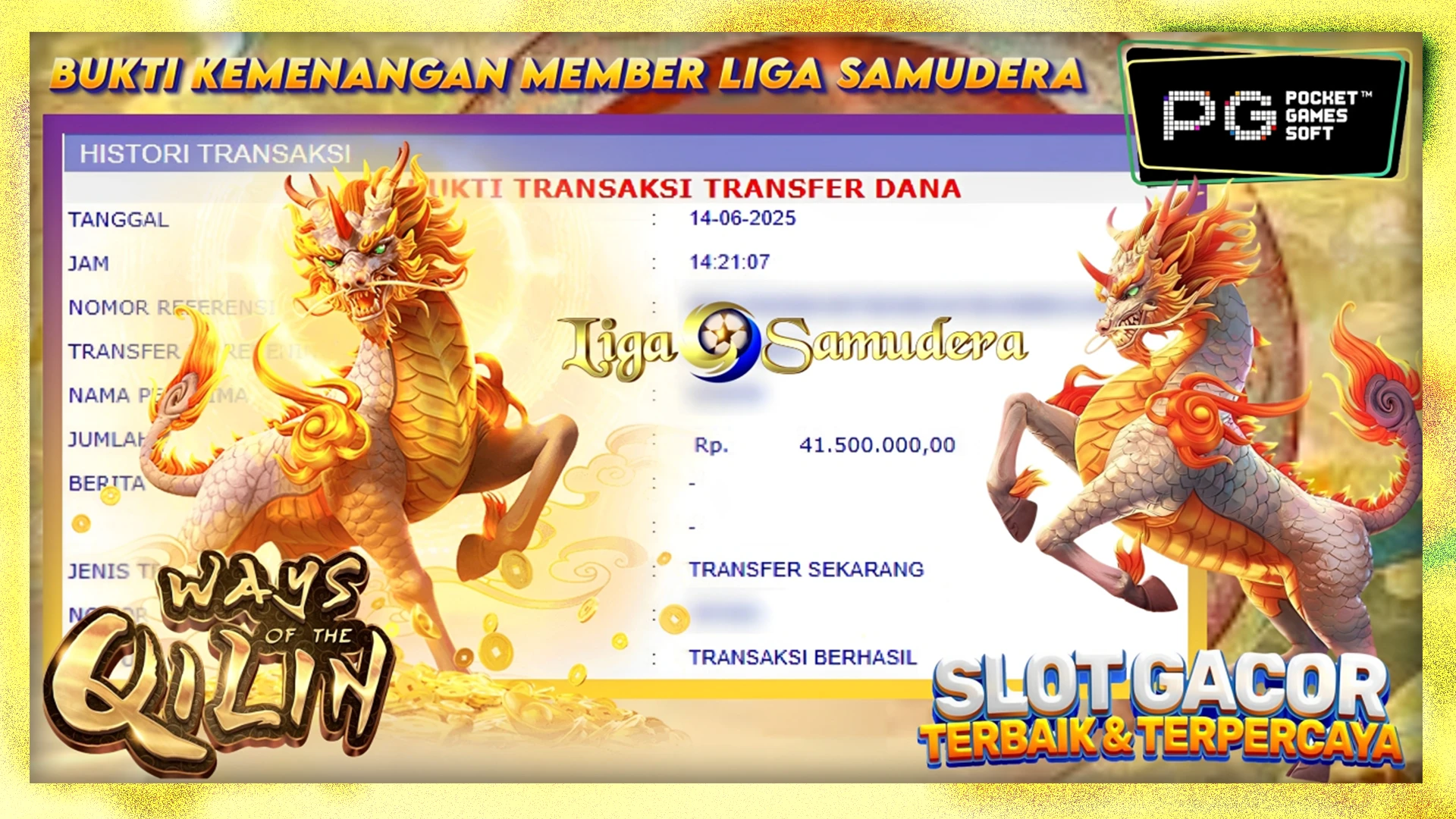BUKTI KEMENANGAN MEMBER LIGA SAMUDERA BERMAIN SLOT PG SOFT “WAYS OF THE QILIN”