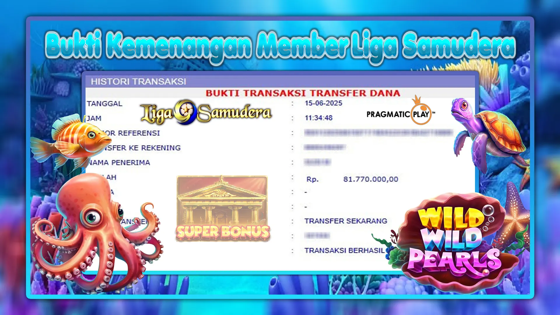 BUKTI KEMENANGAN MEMBER LIGA SAMUDERA BERMAIN SLOT PRAGMATIC “WILD WILD PEARLS”