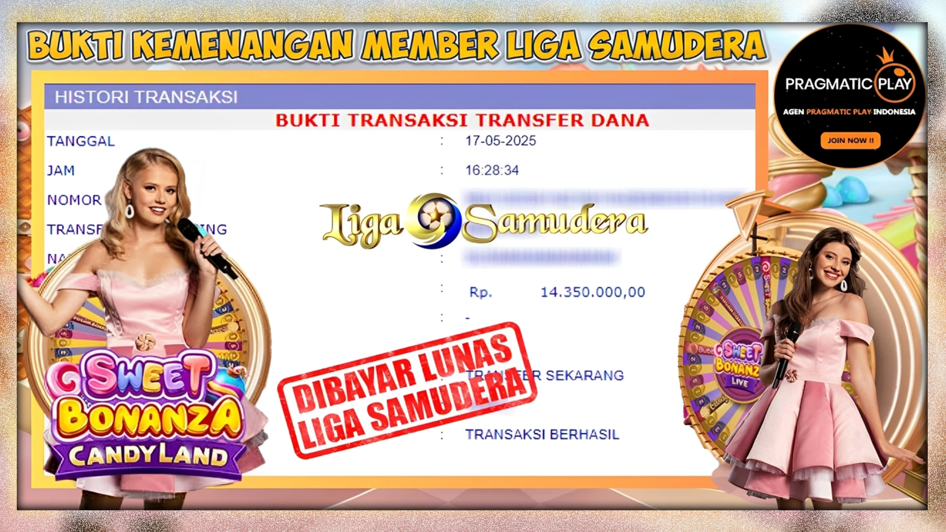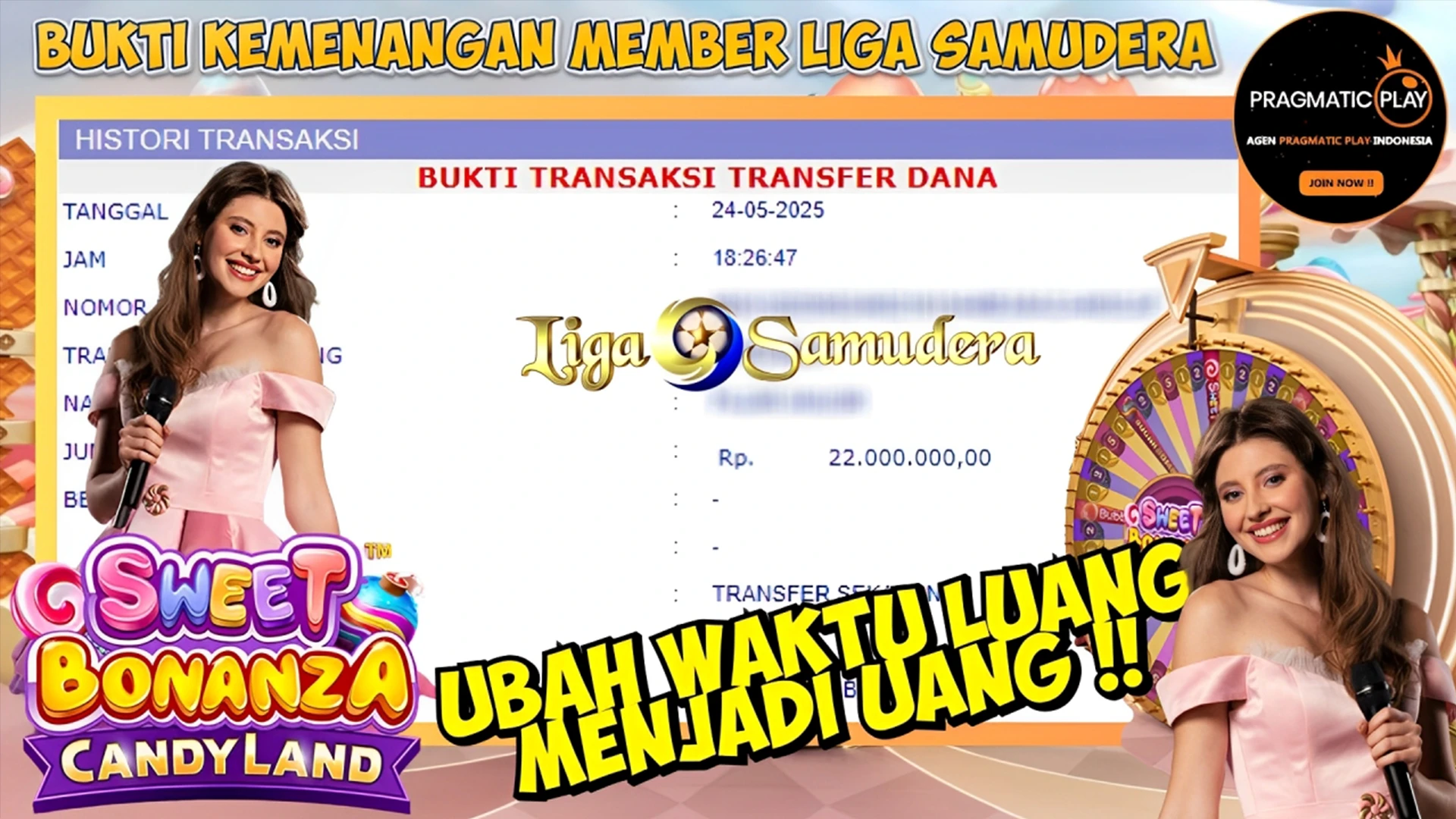 BUKTI KEMENANGAN MEMBER LIGASAMUDERA BERMAIN GAME LIVE CASINO ” SWEET BONANZA CANDYLAND ”