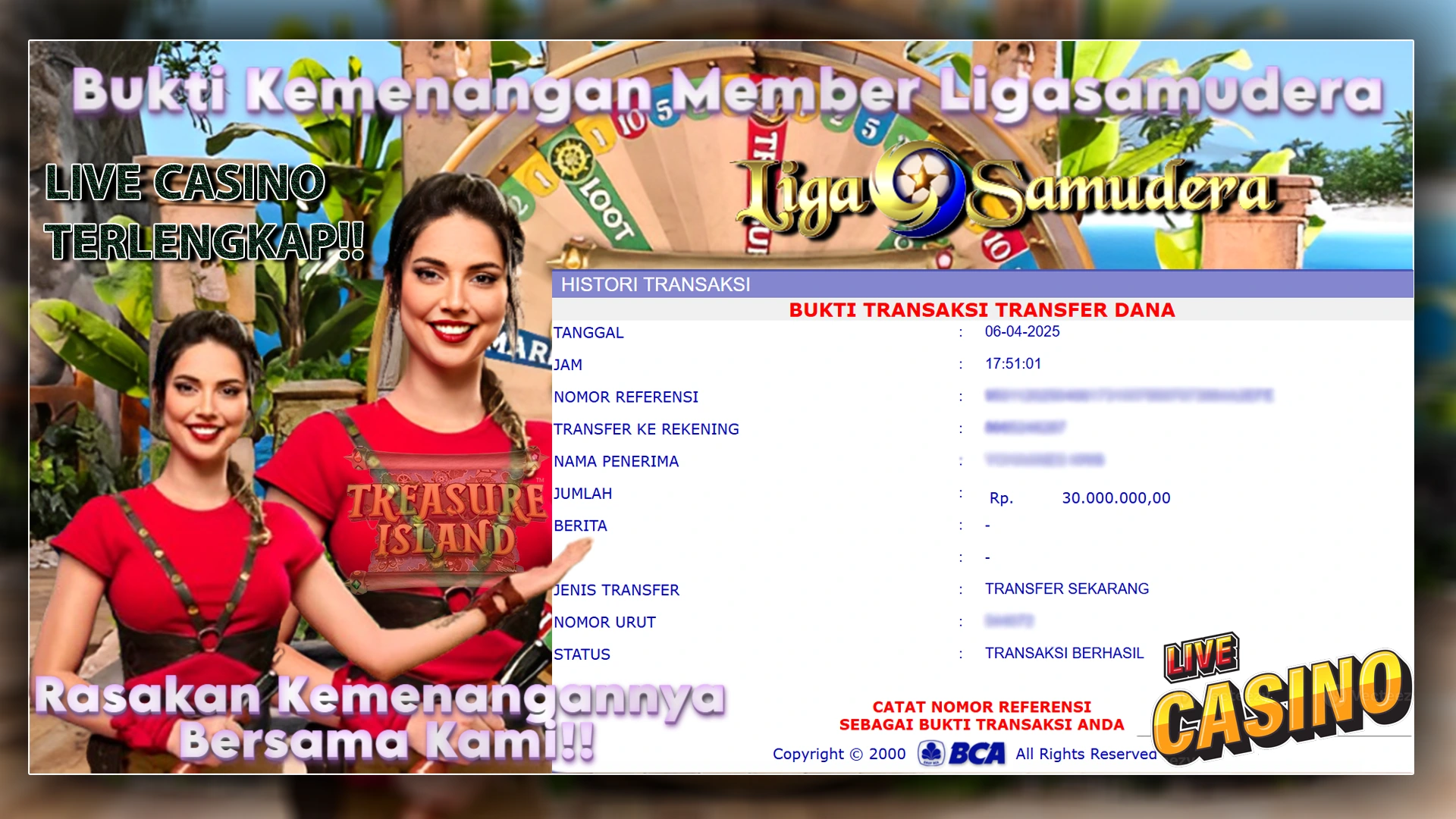 BUKTI KEMENANGAN BERMAIN LIVE CASINO MEGA SIC BO