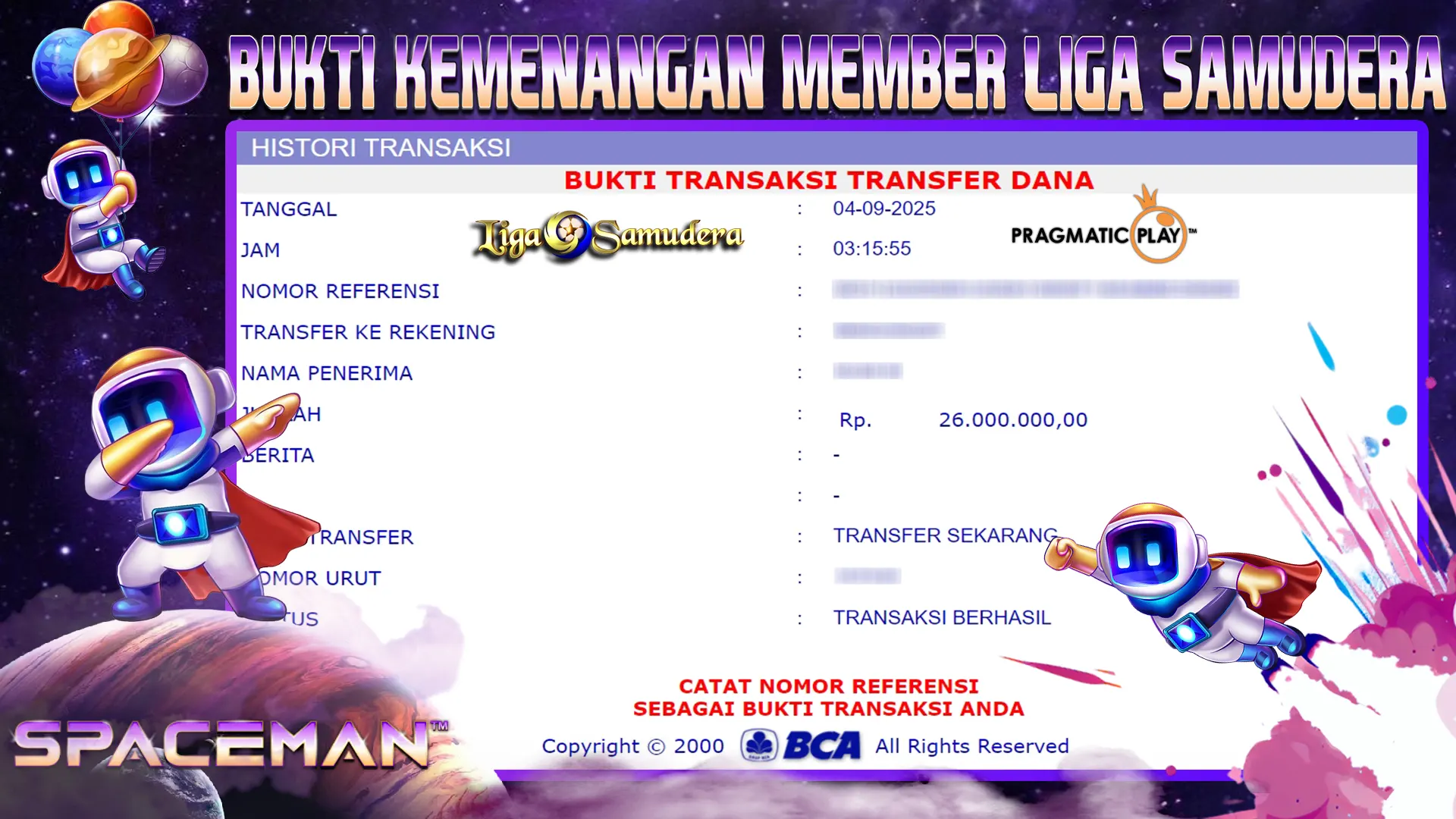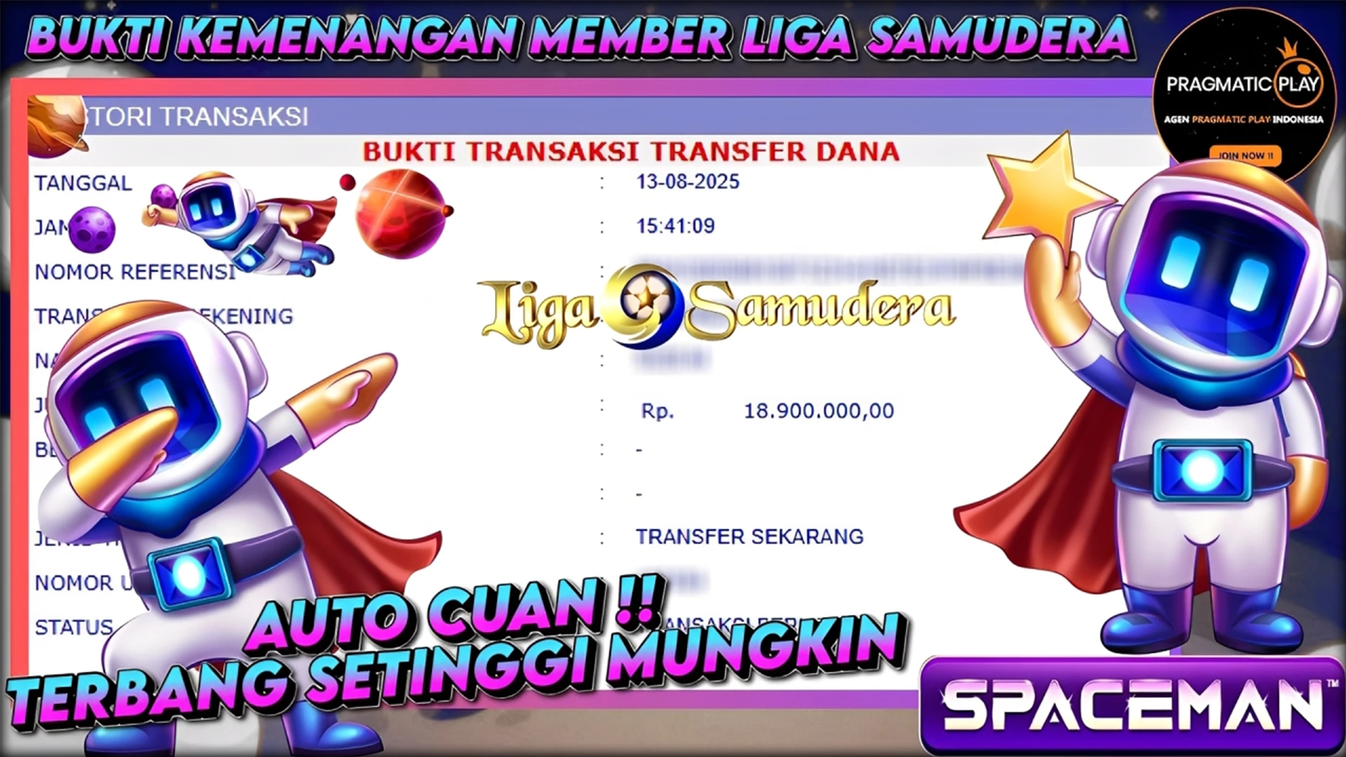 BUKTI KEMENANGAN MEMBER LIGA SAMUDERA BERMAIN E-GAMES PRAGMATIC “SPACEMAN”