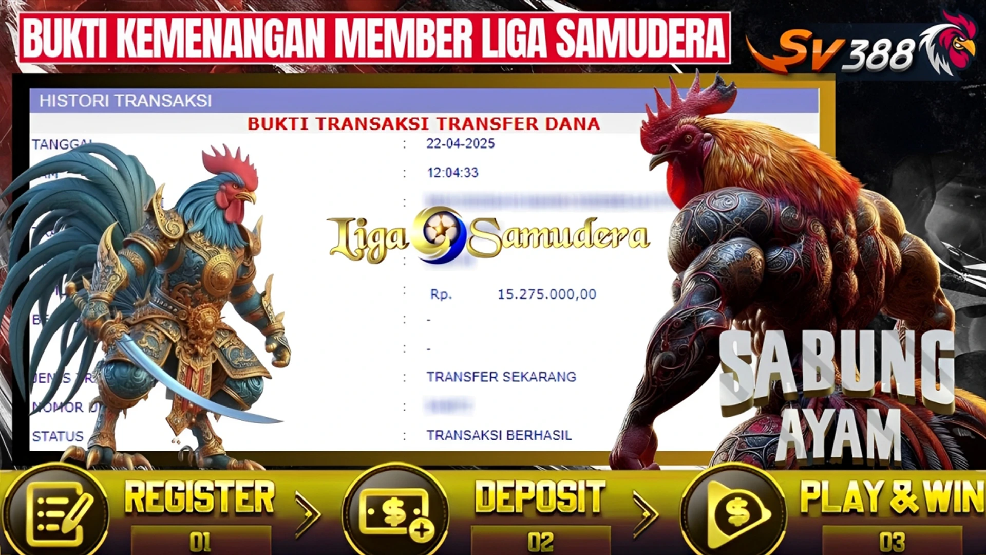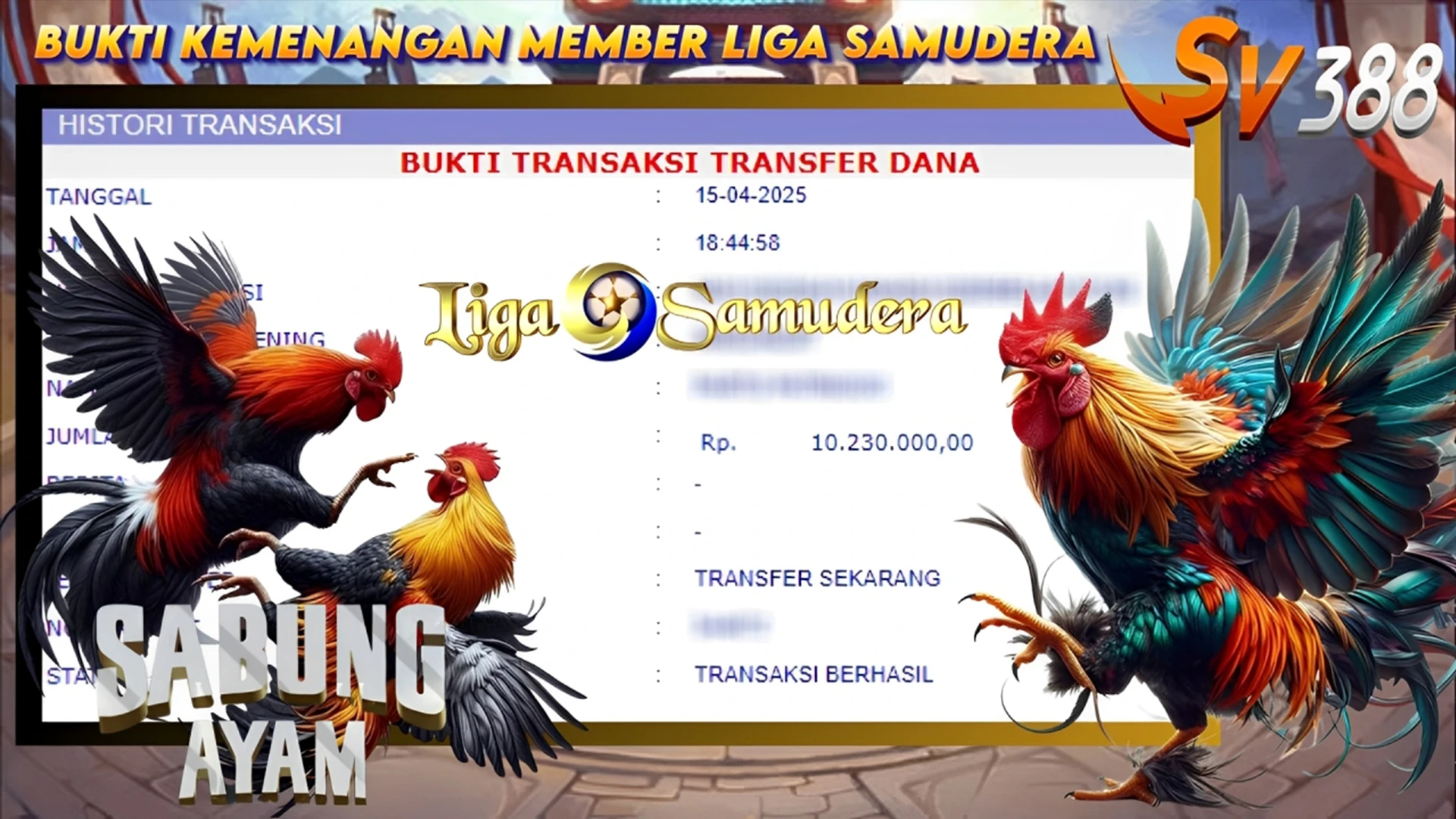 BUKTI KEMENANGAN MEMBER LIGA SAMUDERA BERMAIN SABUNG AYAM “SV388”