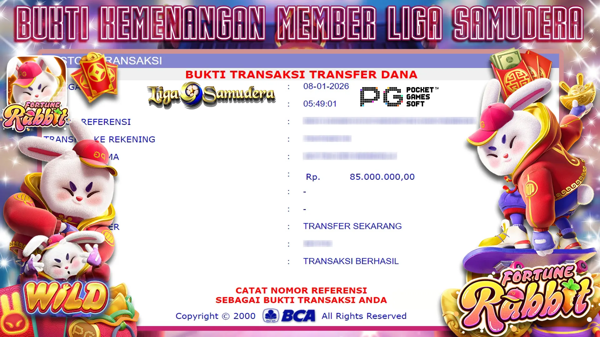 BUKTI KEMENANGAN BERMAIN PERMAINAN SLOT PG SOFT ” FORTUNE RABBIT “