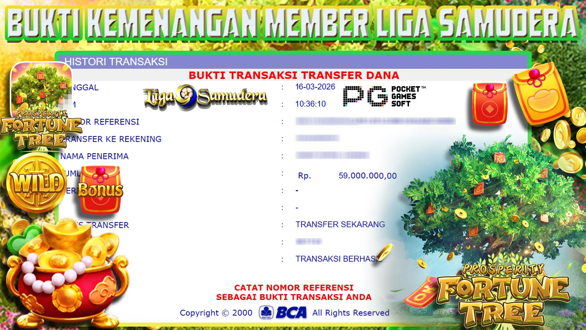 BUKTI KEMENANGAN BERMAIN PERMAINAN SLOT PG SOFT ” PROSPERITY FORTUNE TREE “