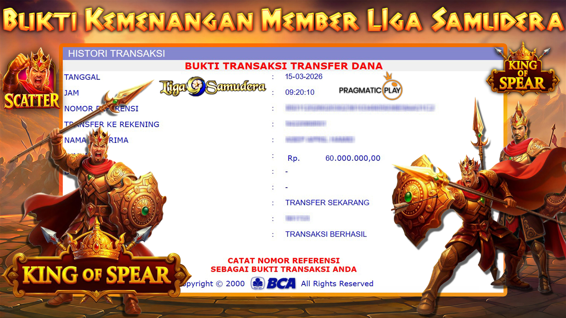 BUKTI KEMENANGAN BERMAIN PERMAINAN SLOT PRAGMATIC ” KING OF SPEAR “