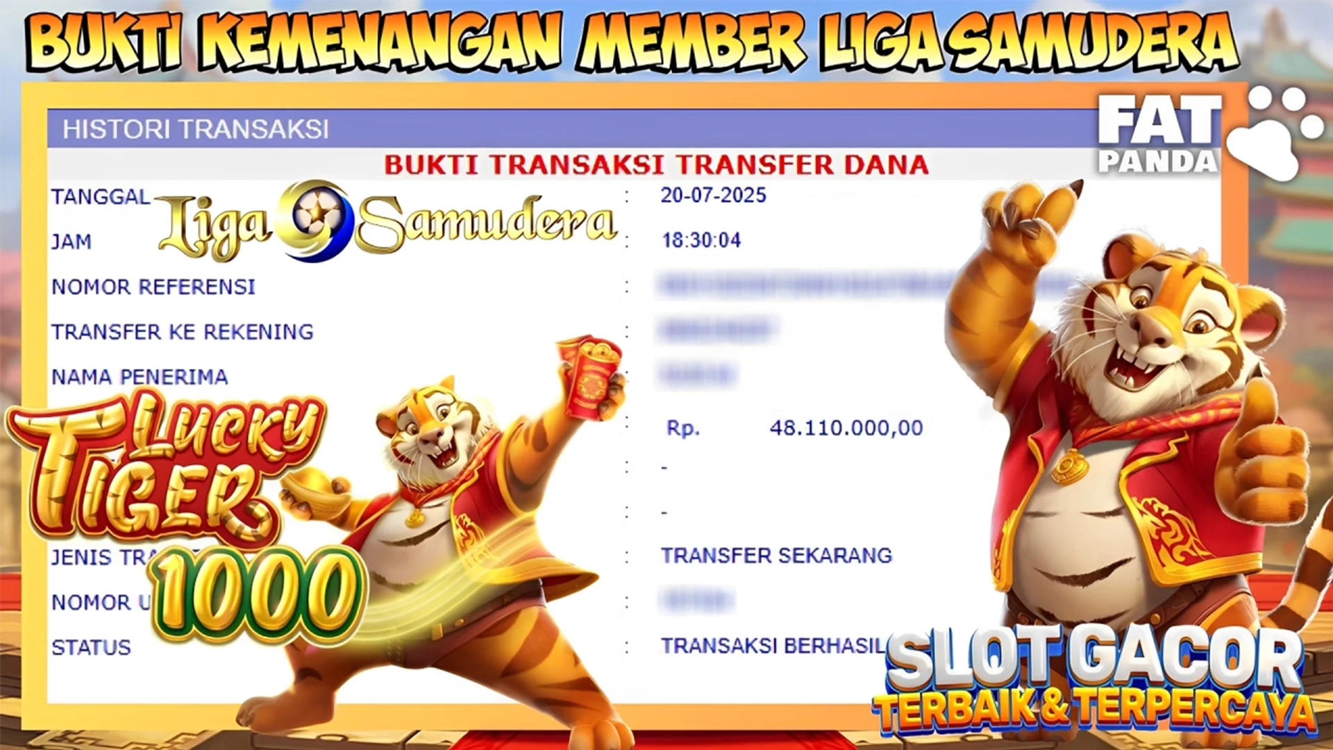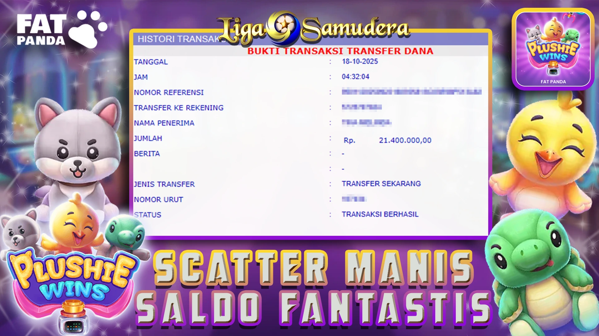 BUKTI KEMENANGAN BERMAIN PERMAINAN SLOT FATPANDA BY PRAGMATIG ” PLUSHIE WINS “