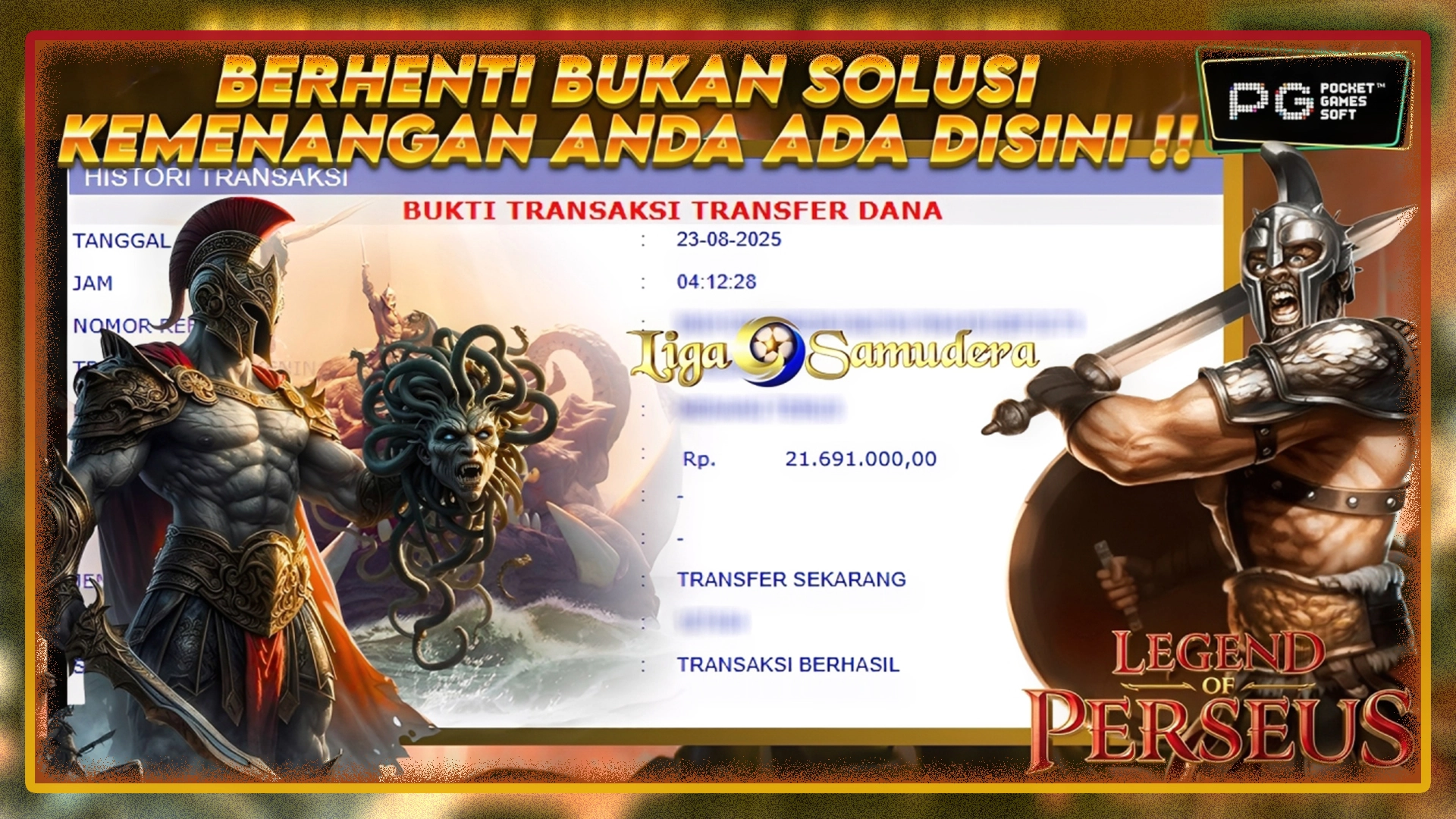 BUKTI KEMENANGAN MEMBER LIGA SAMUDERA BERMAIN GAME SLOT PG SOFT “LEGEND OF PERSEUS”