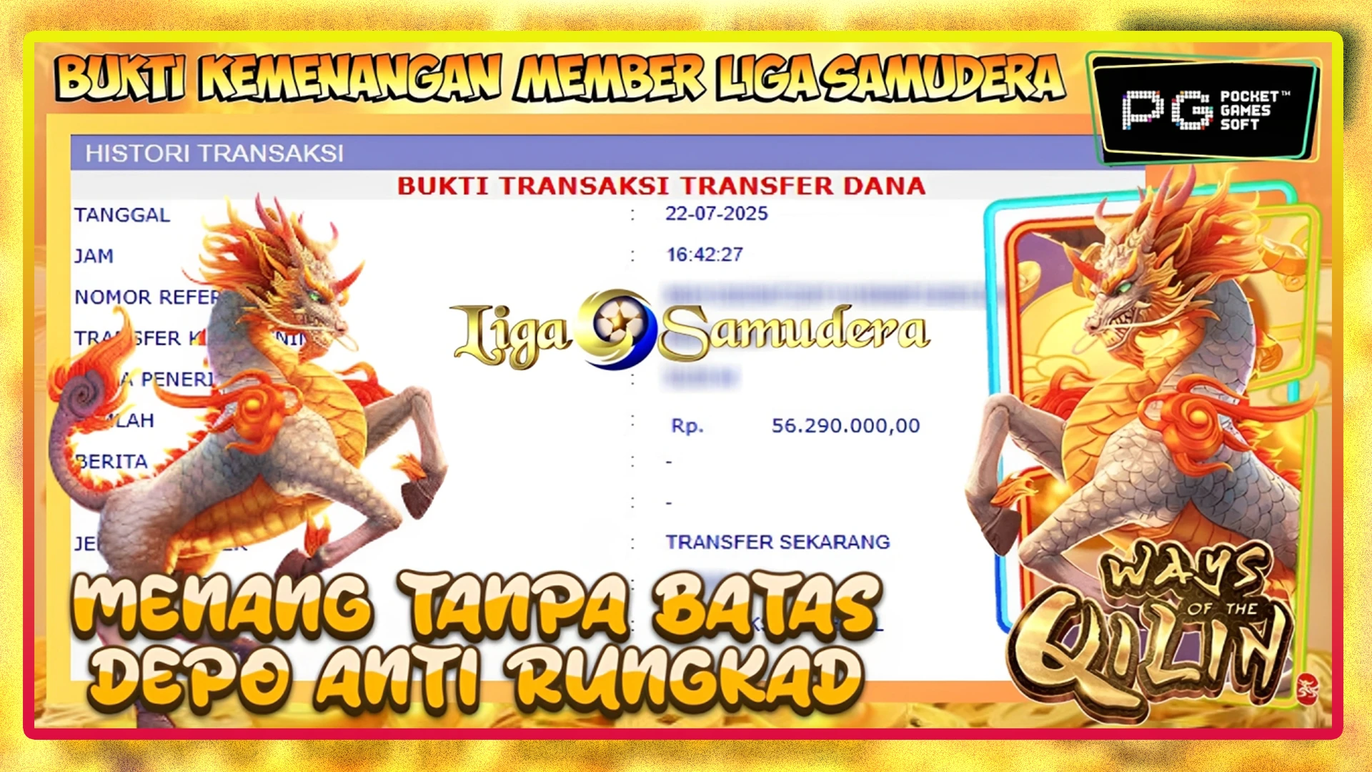 BUKTI KEMENANGAN MEMBER LIGA SAMUDERA BERMAIN GAME SLOT PG SOFT “FORTUNE DRAGON”