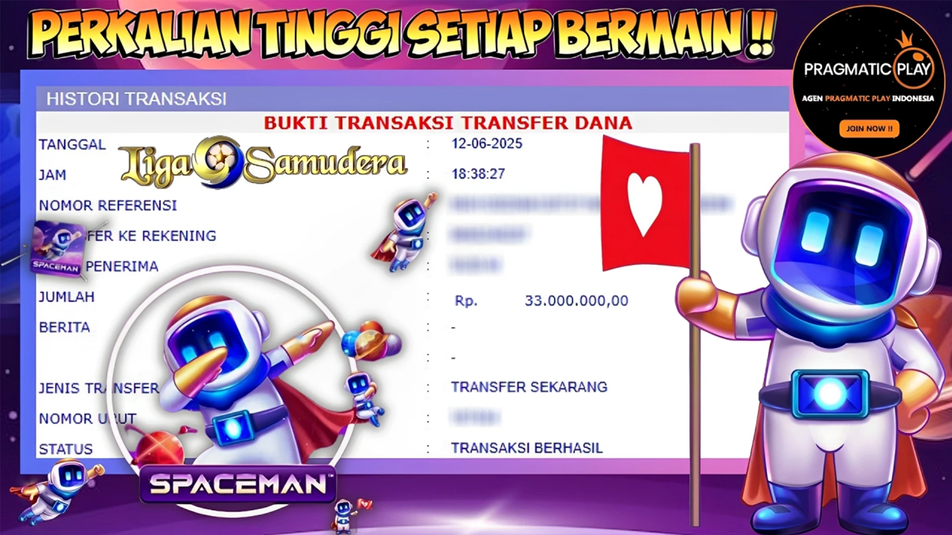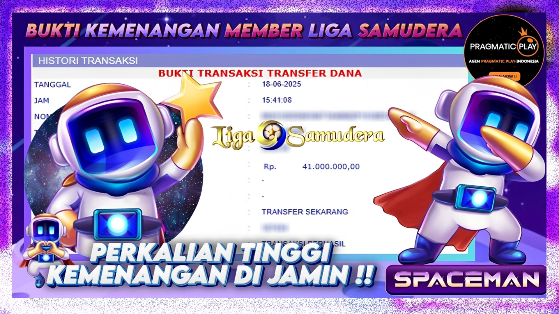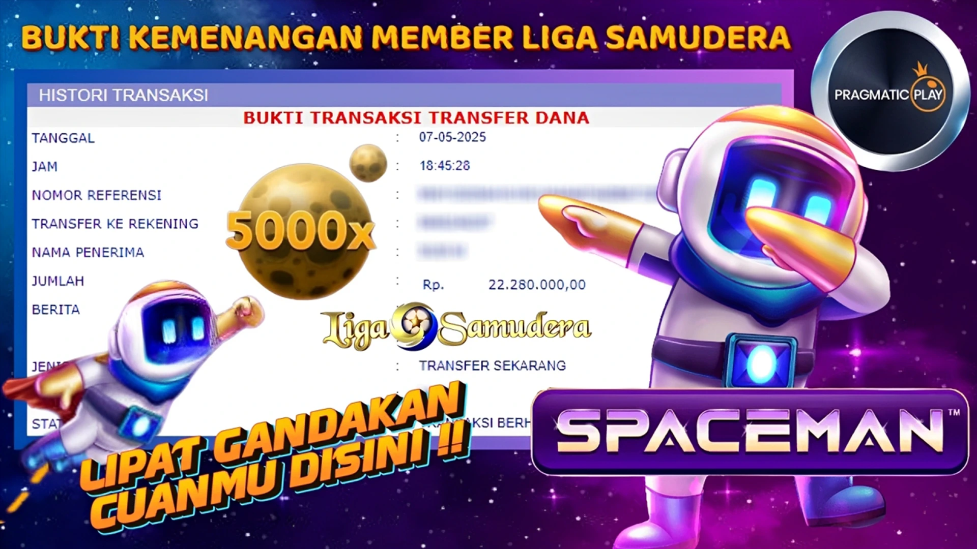 BUKTI KEMENANGAN MEMBER LIGA SAMUDERA BERMAIN E-GAMES PRAGMATIC “SPACEMAN”