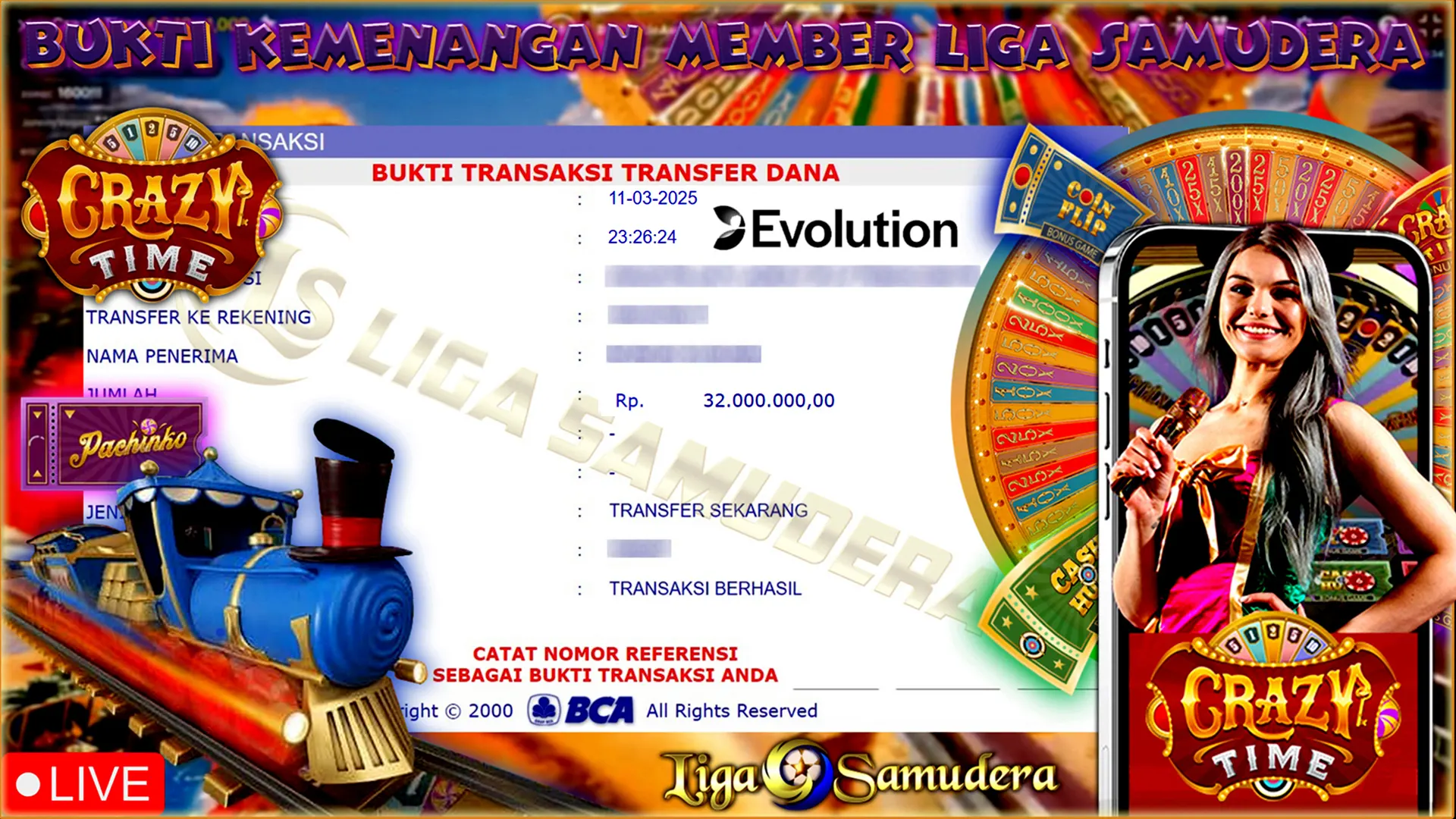 BUKTI KEMENANGAN MEMBER LIGASAMUDERA BERMAIN GAME LIVE CASINO ”Monopolybigballer”