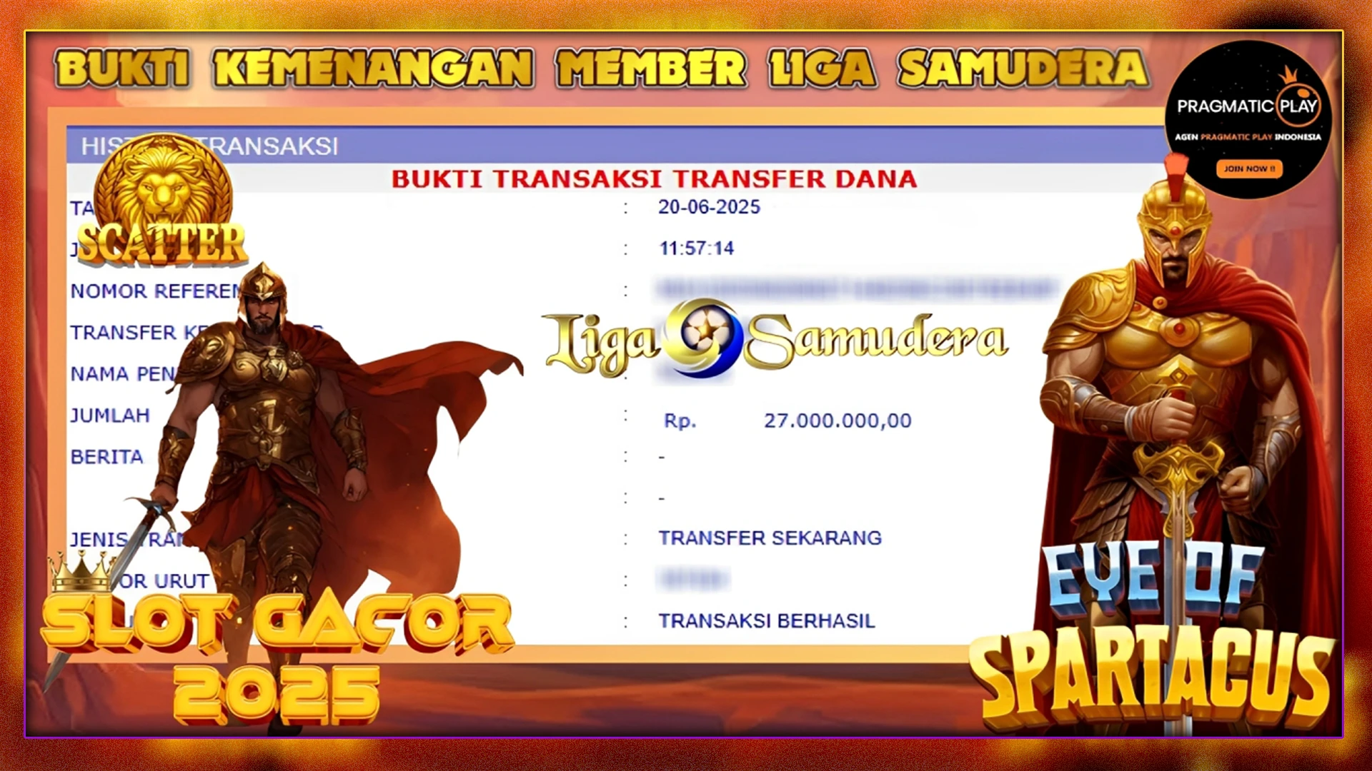 BUKTI KEMENANGAN MEMBER LIGA SAMUDERA BERMAIN SLOT PRAGMATIC “EYE OF SPARTACUS”